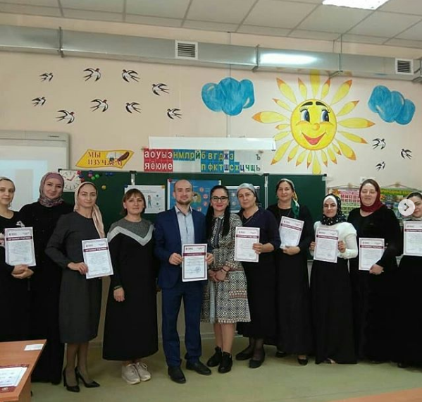 11.10.2019Сегодня , на базе нашей школы , учителем истории и обществознания, Арби Дундаевичем Шамаевым , в рамках реализации федерального проекта "Повышение финансовой грамотности населения РФ" , было организовано открытое занятие на тему: "Банки и банковская система". На открытом уроке присутствовали учителя различных школ нашей республики, а также представители РАНХиГС, в ведомстве которой находится реализация указанного выше проекта. Урок проводился в целях обмена опытом реализации программ повышения финансовой грамотности населения РФ. Гости дали высокую оценку организацию и проведению данного открытого урока, а коллеги рассказали о полученном опыте. Участники были отмечены сертификатами участников, а директора Астамирова Тамерлана Хасамбековича и учителя истории и обществознания Арби Дундаевича Шамаева отметили благодарственными письмами от имени РАНХиГС , за активную помощь в реализации федерального проекта "Повышение финансовой грамотности населения РФ".