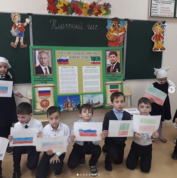 Сегодня во всех классах проведены мероприятия на знание символики РФ и ЧР, текста Гимнов, значения цветов Флага, изображений Герба.
