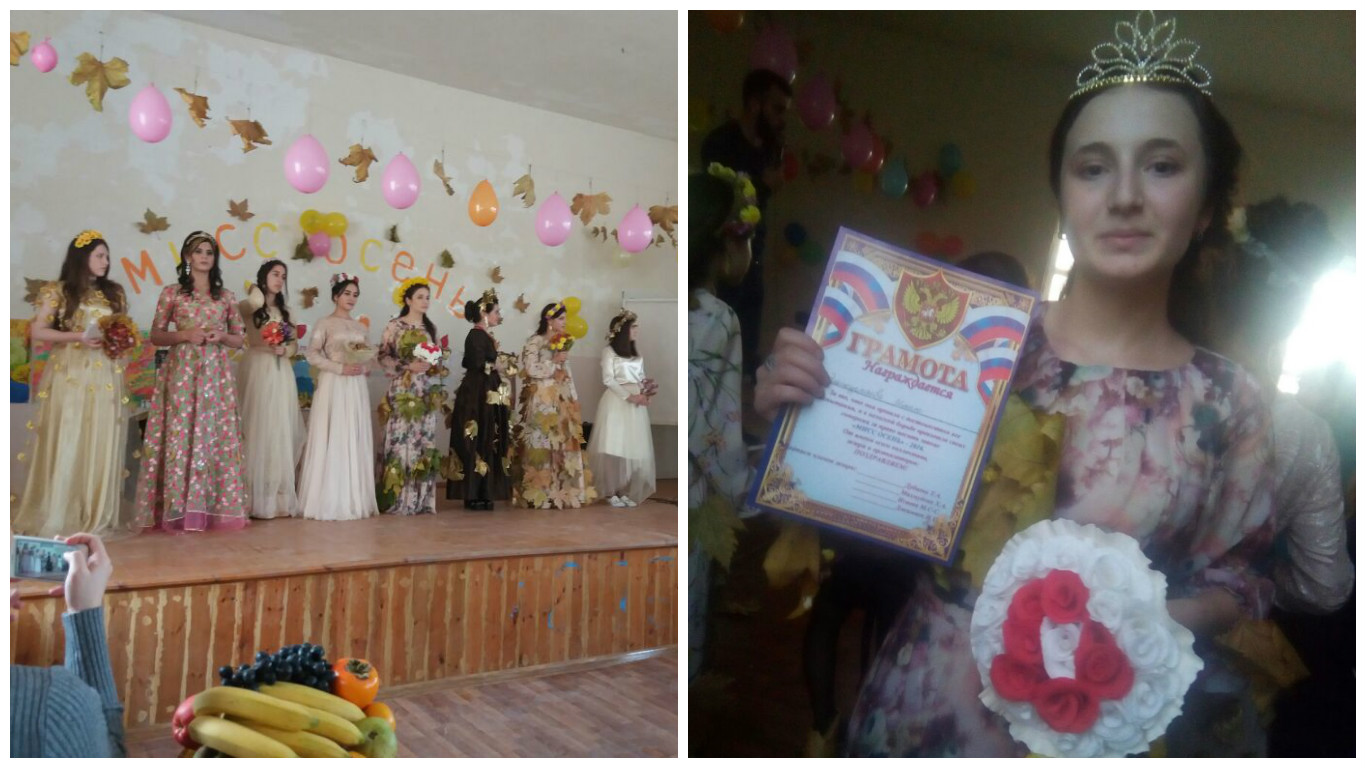 02.11.20162 ноября 2016 года в школе был проведен Осенний бал. В мероприятии участвовали учащиеся 8-11 классов. Организатор Астамирова Э.Х. провела конкурс в 5 номинациях: показ платьев, творческий конкурс (песня, стих-е), фруктовая нарезка, стенгазета и конкурс блюд. Участницы выступили на высшем уровне, жюри осталось довольным. По итогам конкурса «Мисс осень» стала учащаяся 9 «А» класса Эльжуркаева Иман.