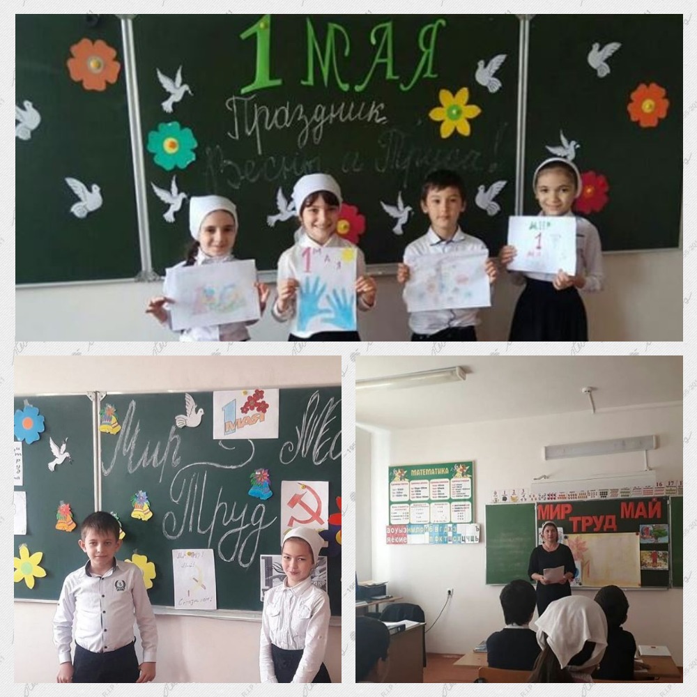 Плана воспитательной работы школы на 2017-2018 учебный год, в целях гражданско -патриотического , духовно -нравственного воспитания подрастающего поколения в школе проведены следующие мероприятия :- оформлен фасад здания школы; -проведены мероприятия по санитарной очистке территории , прилегающей к школе;- проведены классные часы по теме: "1 май -праздник Весны и Труда!" ;- торжественное мероприятие , посвященное празднику.