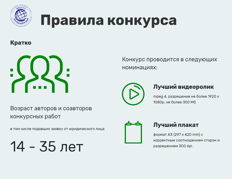 Торжественная церемония награждения победителей конкурса будет приурочена к Международному дню борьбы с коррупцией (9 декабря)